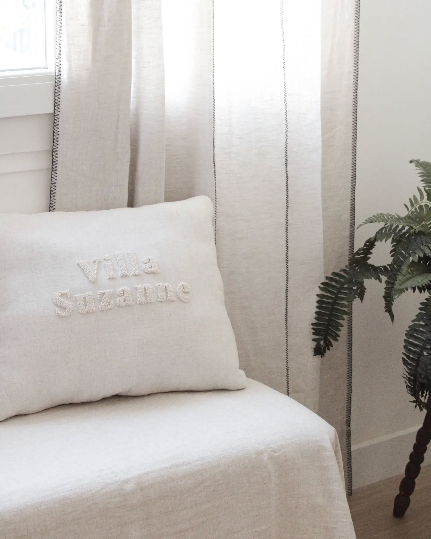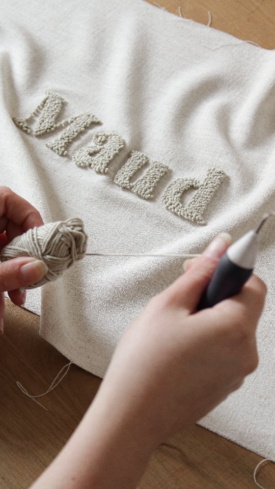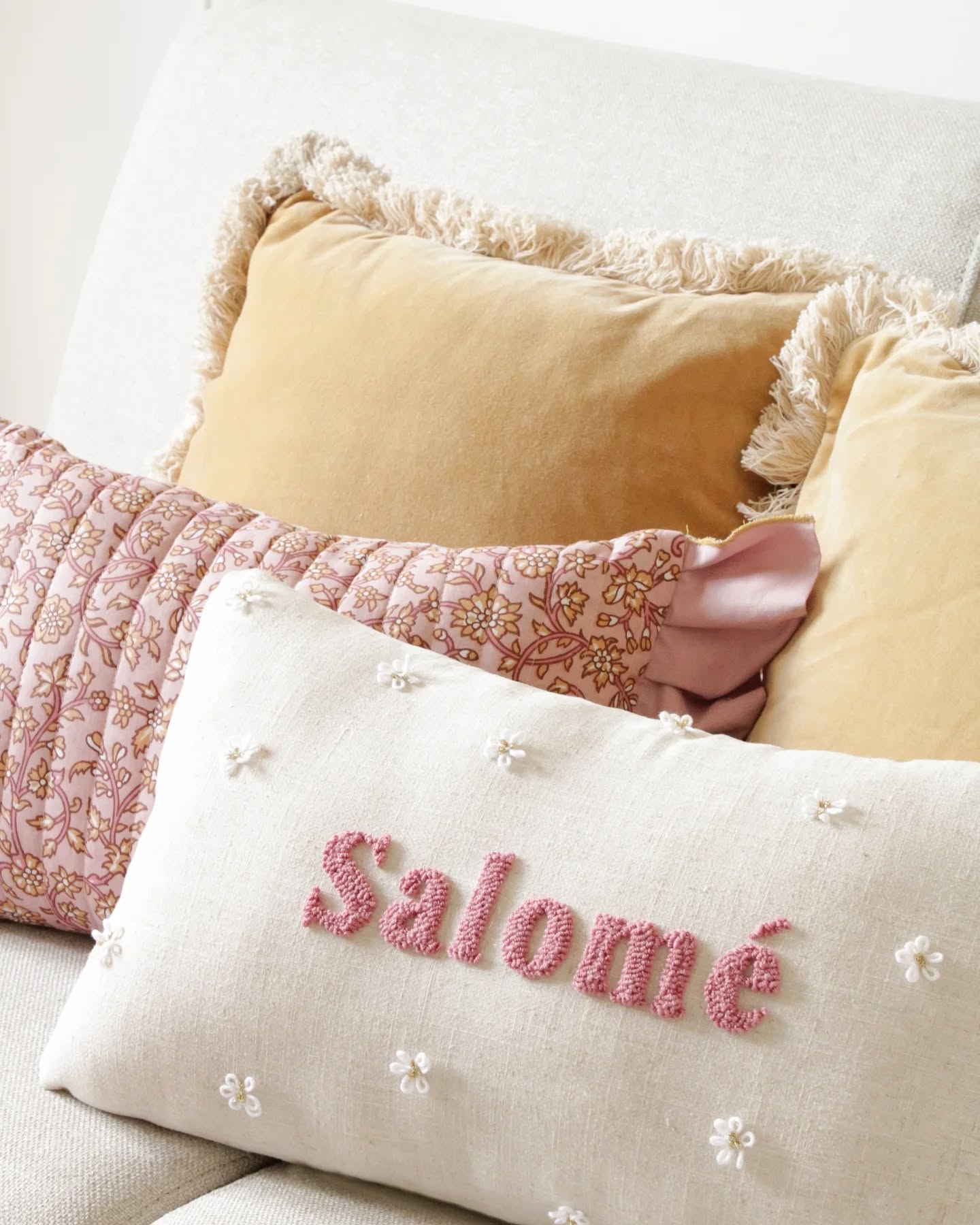 Coussin avec broderie en punch needle bouclettes fait mains à personnaliser